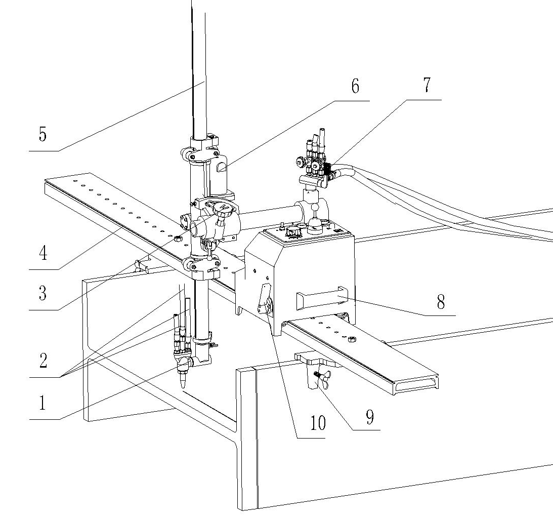 3. 橫向調節(jié)手輪:控制割炬的橫向移動 9. 軌道壓板:在H型鋼上定位機器