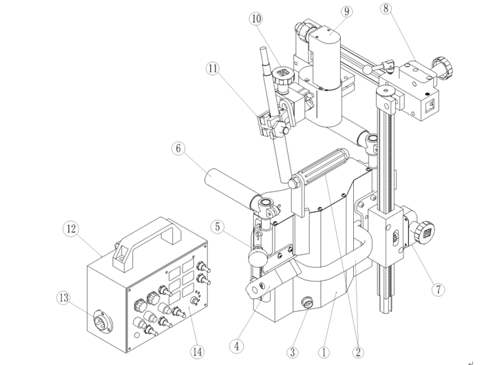 10)角度微調(diào)裝置:此裝置可以很方便地對(duì)焊槍的焊接角度進(jìn)行調(diào)節(jié)。