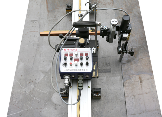 “HK-600D”便攜式管孔氣體切割機,此裝置主要用于高壓容器,熱交換器的相交,連接管孔的T形接頭的高精度切割。管道相交焊接需要在主管(筒體)開孔切割。該機器是通過割炬自動上升/下降的自鎖機構,利用三角學的原理使機械裝置能夠精確跟蹤筒體曲面,來實現割炬運行的軌跡。在設計上已周密的考慮,盡量減輕機器重量,便于攜帶方便。應用無限旋轉氣體分配器,使管路不纏繞。該機器也可做普通的平面圓切斷或坡口切割。機器是由控制箱,割炬及割炬自動上升/下降的自鎖機構,主體機架所組成。各部件都由主體機架相連。通過離合裝置,使機器的運行部件脫離電動裝置而實現手動旋轉割炬,使割炬快速對齊切割起始點。機器的控制箱安裝在切割機構頂部,操作簡便,易于維修。