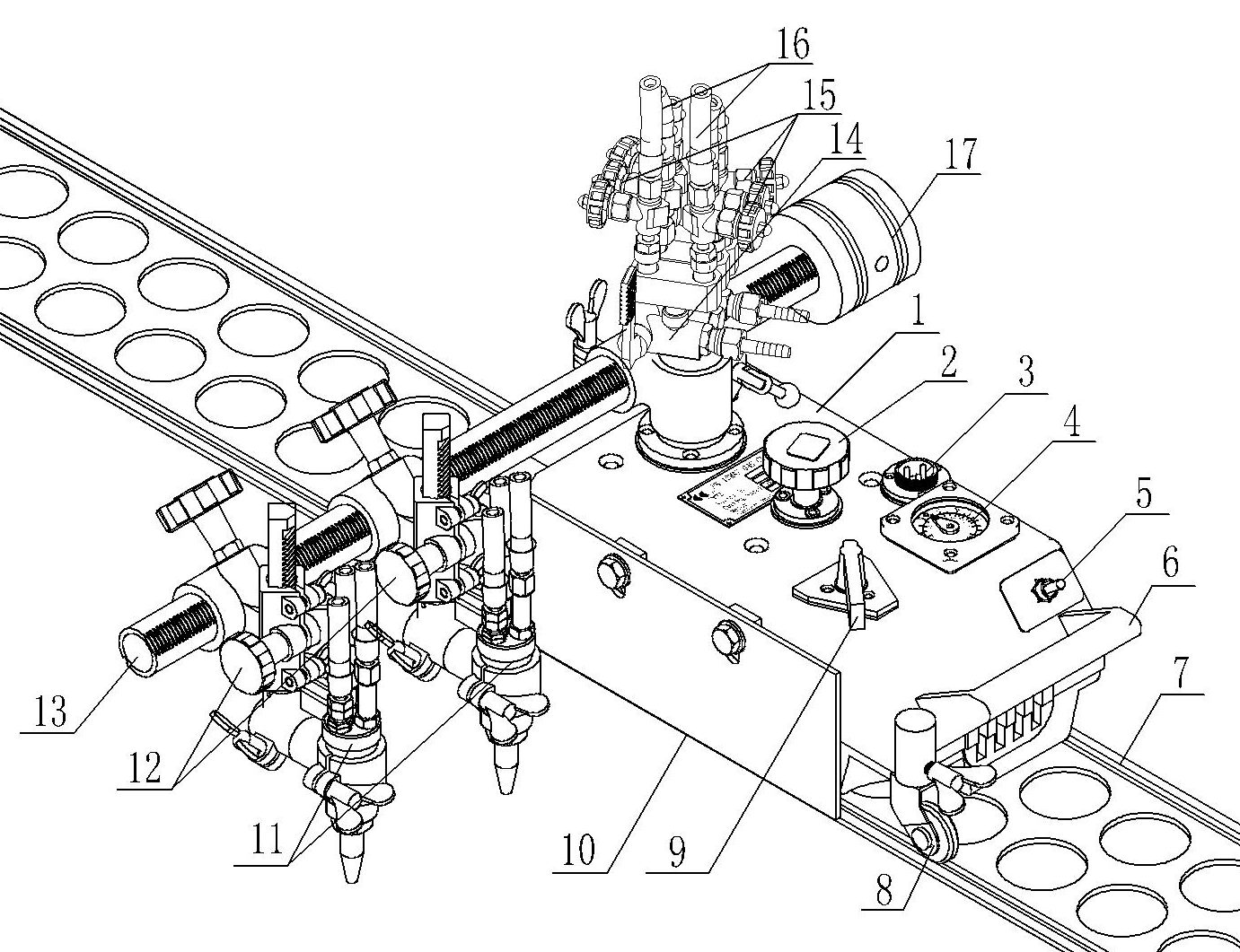 12. 割炬移動(dòng)總成:調(diào)節(jié)割炬的縱、橫向位置。