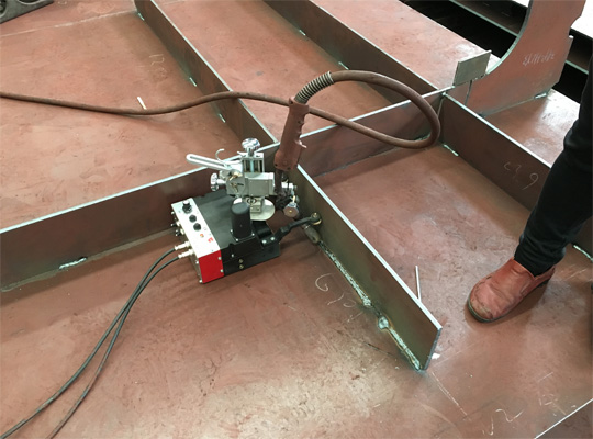 本裝置的左側(cè)裝有感應(yīng)式傳感器,當(dāng)機器行走過程中,傳感器感應(yīng)到金屬物品時,機器會自動停止,并根據(jù)機器的設(shè)置自動執(zhí)行后面的操作(如盲區(qū)焊接、收弧、熄弧、復(fù)位等動作)。因此一人可同時操作多臺本焊接小車,以提高工作效率。本裝置有三種盲區(qū)焊接模式供用戶選擇,可選擇焊槍自動移動到小車的中部、另一側(cè)或不動進行焊接;焊接至工件端部時,傳感器自動控制焊槍的輔助行走,執(zhí)行盲區(qū)的焊接。盲區(qū)焊接時的焊槍移動速度與小車行走時的焊接速度基本一致,從而不影響焊接質(zhì)量。