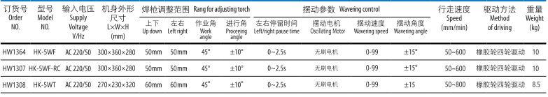 HK-5WT 擺動式焊接小車是自動裝置,一次焊接可以獲得較寬焊縫。擺動速度,擺動角度,中心偏移位置和左右停留時間均可調整。適合各種不同規格的焊道,手柄為磁控式,移動此手柄可以部分的減少磁力,便于清理鐵質垃圾和移動小車。小車安裝有感應停止開關,焊接結束后小車可以自動停止,便于一個工人同時操縱多臺設備。安裝有永久磁鐵與平面導軌,避免小車脫離焊接線的現象。